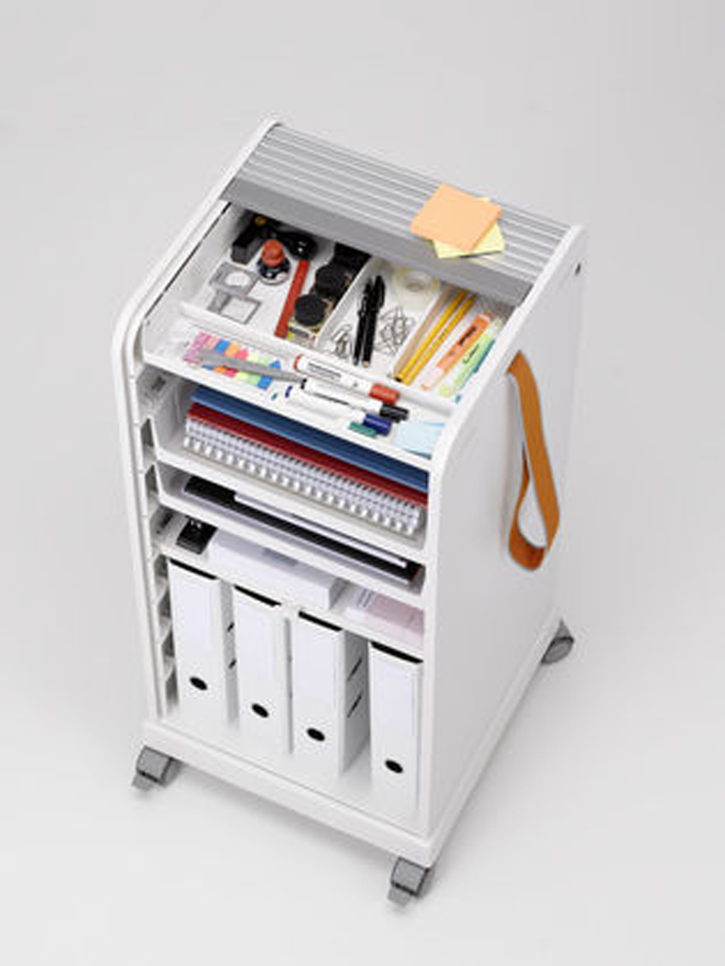 Тумба Follow Me 2 от дизайнера Antonio Citterio производится с 2013 г. Это мобильный инструмент, который может вписаться в любое окружающее пространство и стиль обстановки. Его файлы и ящики могут использоваться как для хранения бумаг и документов, так и для личных вещей. Модель легко передвигается вслед за вами, благодаря удобным роликам и специальной транспортной петле. Наполнение - полки или выдвижные ящики.