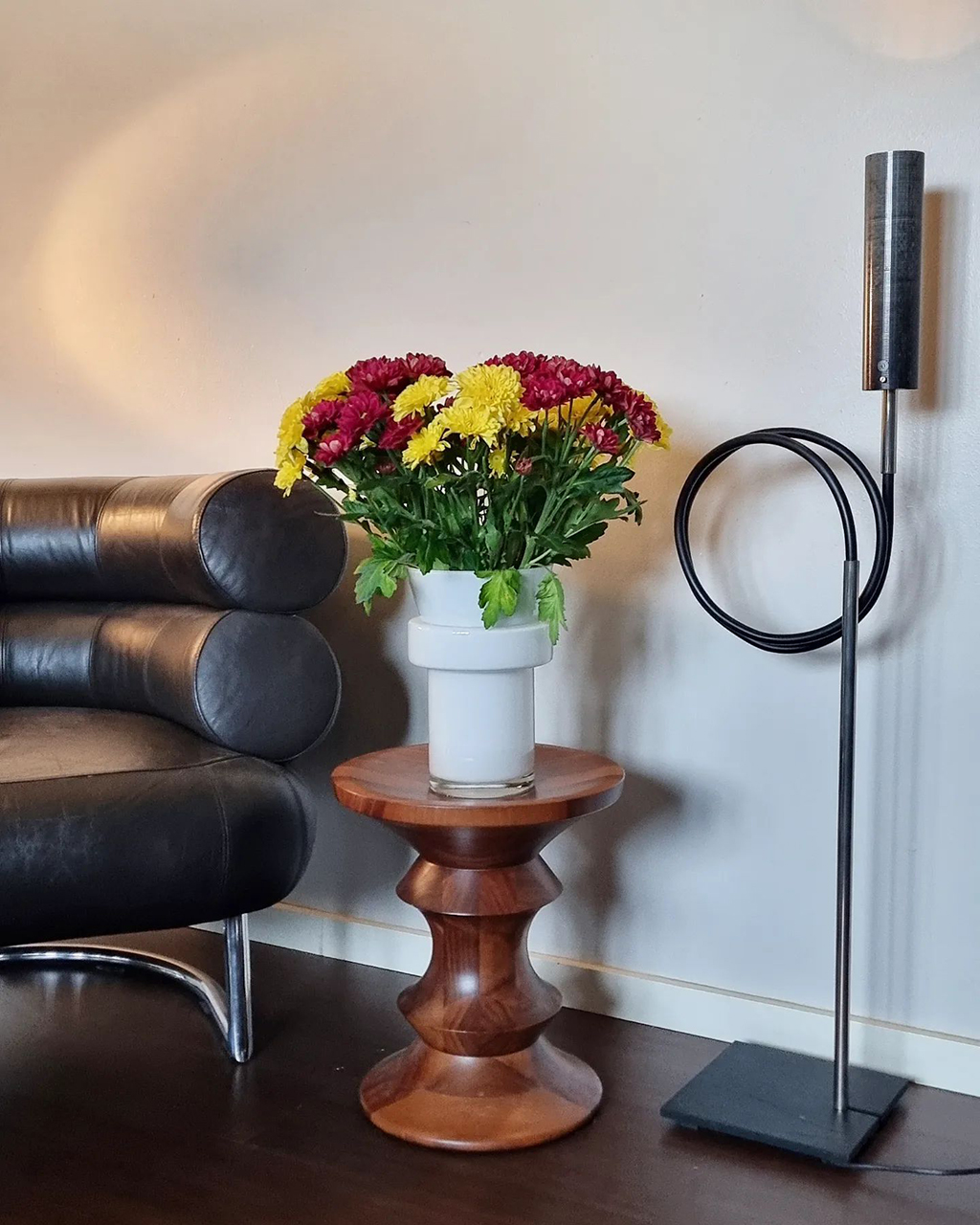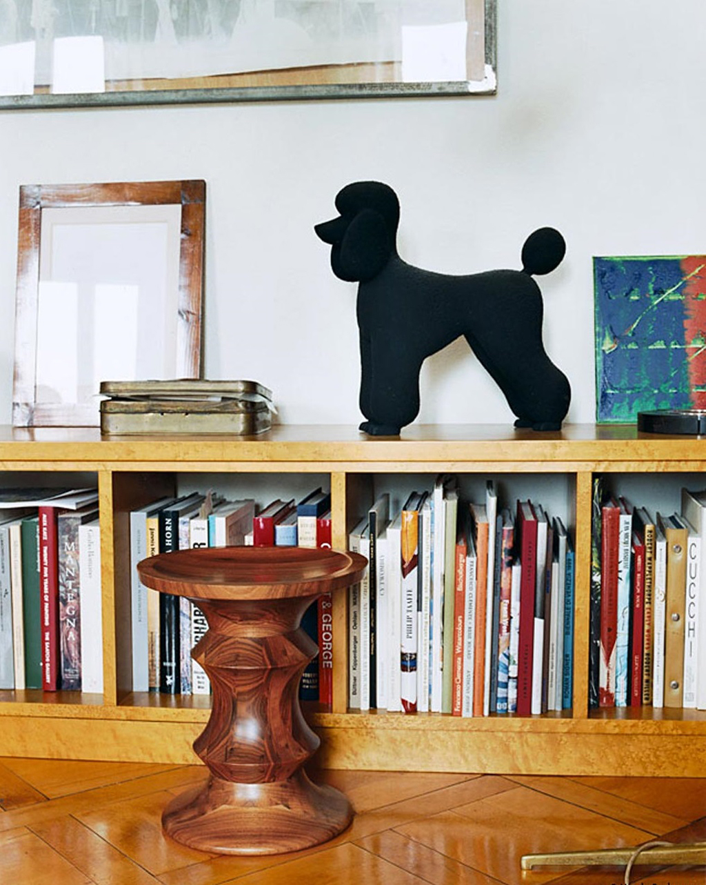 Серия Stools от дизайнеров Charles & Ray Eames производится с 1960 г. Модель была разработана для интерьера холла Рокфеллер-центра в Нью-Йорке. Выпускаются модели с тремя разными дизайнерскими элементами в центральной части. Материал - массив ореха, отделка - прозрачный лак. Может использоваться в качестве журнального столика или табурета. С 2025 года также доступно исполнение - массив каштана (chestnut). В настоящее время по всему миру производятся многочисленные копии этого табурета, не имеющие никакого отношения к оригинальной модели. Остерегайтесь подделок!