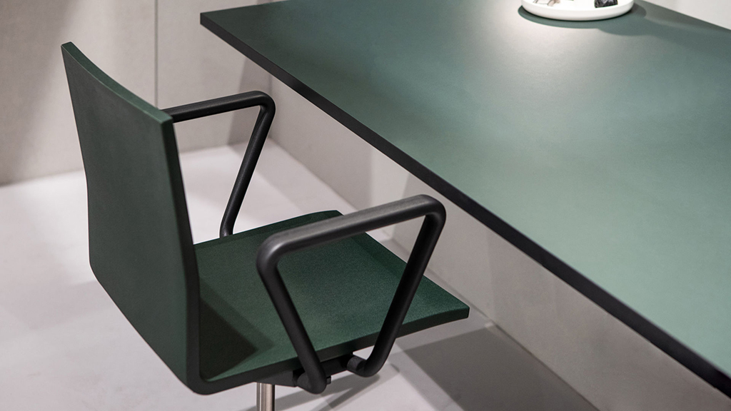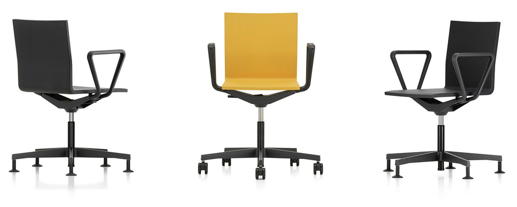 Кресло .04 от дизайнера Maarten Van Severen производится с 2000 г. Данная модель способствует динамичной работе, гладкое, регулируемое по высоте сиденье из пенополиуретана имеет встроенные пружины, которые делают его удивительно удобным, в то время как угловую поддержку обеспечивает подставка для ног. Для заказа доступны версии на роликах и на подпятниках, а также с подлокотниками и без.