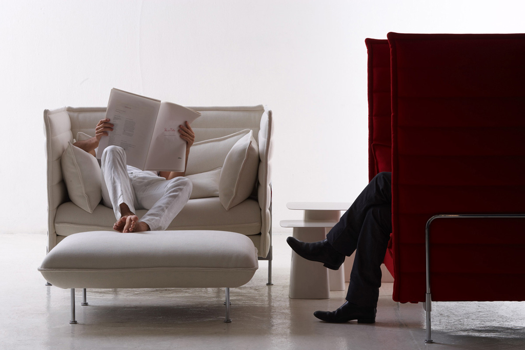 Кресло Alcove Love Seat является продолжением серии диванов Alcove Sofa от дизайнеров Ronan & Erwan Bouroullec для тех, кто ищет абсолютного уединения. Основная идея братьев была создать не просто предмет мебели, а сделать "комнату в комнате". Слово "Alcove" означает углубление или нишу в стене, оборудованную для сна или отдыха. Спинка этого дивана сама служит отличной ширмой и создает место для уединения. Особенно полезно это будет в офисе, сотрудники смогут передохнуть, сконцентрироваться и собраться с мыслями для дальнейшей работы. Братья Bouroullec максимально увеличили внутренне пространство дивана благодаря использованию очень тонких элементов конструкции. Диваны и кресла Alcove могут быть как с высокими спинками, так и со средними. Каркас из хромированной стали, подлокотники и спинка из пластика, усиленного стекловолокном, наполнитель подушек - пенополиуретан и полиэстерное волокно, обивка - ткань нескольких категорий. В настоящее время по всему миру производятся многочисленные копии этого кресла, не имеющие никакого отношения к оригинальной модели. Остерегайтесь подделок!