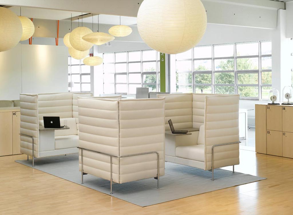 Кресло Alcove Work является продолжением серии диванов Alcove Sofa от дизайнеров Ronan & Erwan Bouroullec для тех, кто ищет абсолютного уединения. Основная идея братьев была создать не просто предмет мебели, а сделать "комнату в комнате". Слово "Alcove" означает углубление или нишу в стене, оборудованную для сна или отдыха. Спинка этого дивана сама служит отличной ширмой и создает место для уединения. Особенно полезно это будет в офисе, сотрудники смогут передохнуть, сконцентрироваться и собраться с мыслями для дальнейшей работы. Братья Bouroullec максимально увеличили внутренне пространство дивана благодаря использованию очень тонких элементов конструкции. Диваны и кресла Alcove могут быть как с высокими спинками, так и со средними. Каркас из хромированной стали, подлокотники и спинка из пластика, усиленного стекловолокном, наполнитель подушек - пенополиуретан и полиэстерное волокно, обивка - ткань нескольких категорий. В настоящее время по всему миру производятся многочисленные копии этого кресла, не имеющие никакого отношения к оригинальной модели. Остерегайтесь подделок!