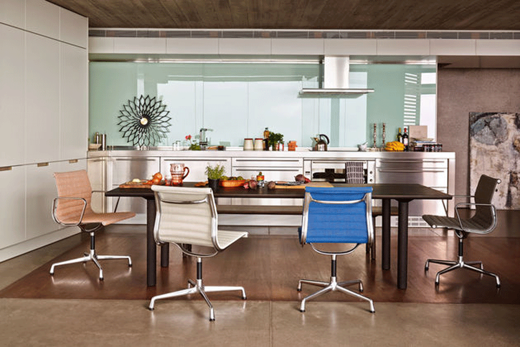 Серия кресел Aluminium Chair от дизайнеров Charles & Ray Eames производится с 1958 г. и является одним из самых величайших мебельных объектов 20 века. Сегодня модель можно встретить в любом уголке мира: в "Институте арабского мира" в Париже, в галерее современного искусства в Лондоне, в центре Жоржа Помпиду, в Большой Галерее Венского Хофбурга, а также в офисах и филиалах самых известных компаний по всему миру. Кресла Aluminium Chair имею важную особенность - интеллектуальную комбинацию материалов, т.е. обивка крепится в алюминиевую структуру профиля каркаса и просто натягивается, принимая его форму - что делает его комфортным даже без наличия мягких подушек. Также компания Vitra предоставляет на кресла серии Aluminium Chair 30-летнюю гарантию! В настоящее время по всему миру производятся многочисленные копии этого кресла, не имеющие никакого отношения к оригинальной модели. Остерегайтесь подделок!