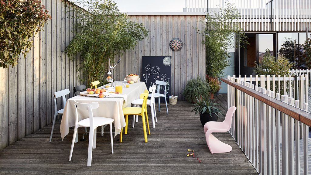 Стул APC (All Plastic Chair) от дизайнера Jasper Morrison производится с 2016 г. Модель очень напоминает классические деревянные стулья, но с улучшенным внешним видом и функциональностью. Этот изящный стул сочетает в себе отличную устойчивость и комфорт. Спинка крепится к каркасу таким образом, что позволяет ей слегка изгибаться в ответ на движения сидящего. Модель выпускается в двухцветной цветовой гамме и подходит для использования как в помещениях, так и на открытом воздухе.