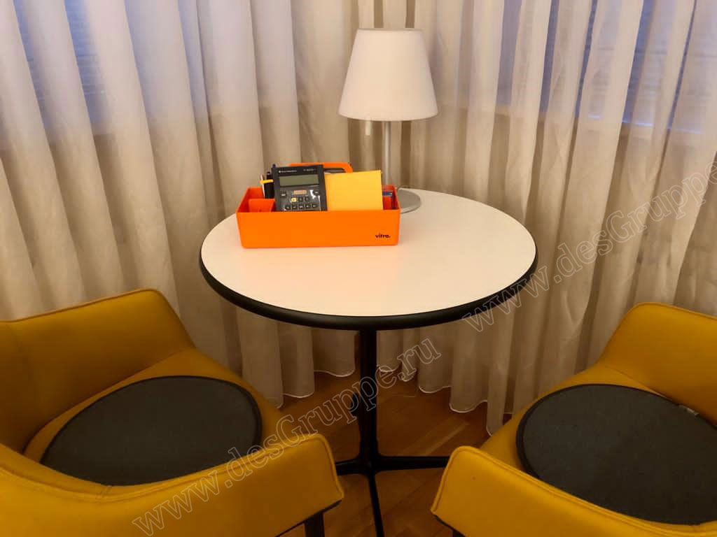 Столы Eames Contract Table от дизайнеров Charles & Ray Eames производятся с 1950 г. Модель создавалась вместе со знаменитыми креслами серии Aluminium Group, с которыми столы имеют одинаковую крестообразную базу. Столы были частью серии проектов, разработанных Charles & Ray Eames, для обеспечения высокого качества мебели, используемой вне помещений. В настоящее время модель предлагается как в домашних версиях, так и в версиях для наружного использования. Для заказа доступны круглая и квадратная версия столешницы.