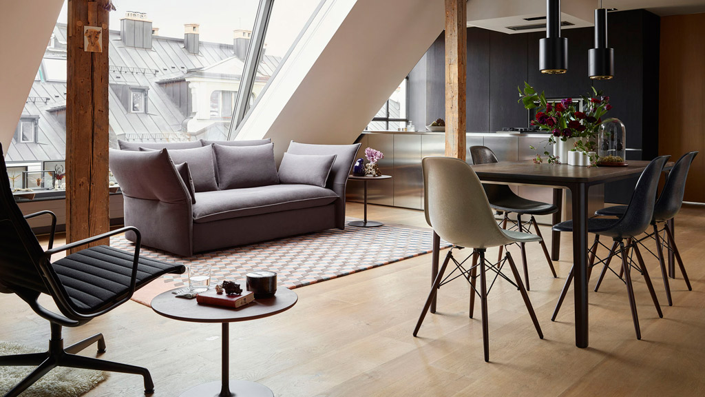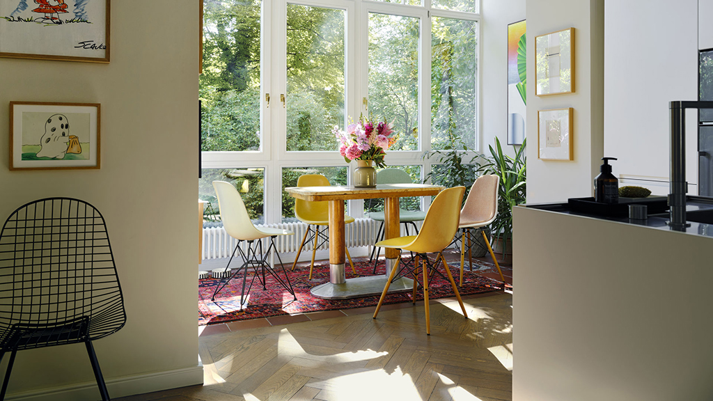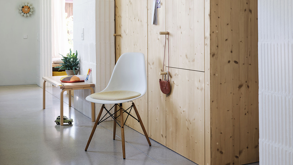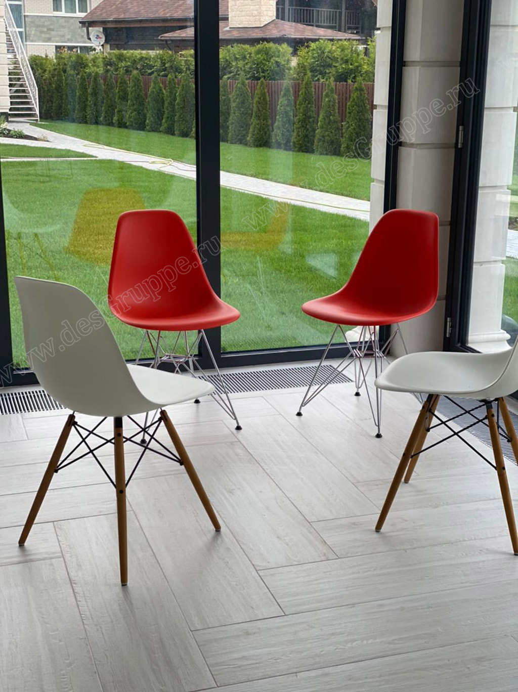 Стул DSW из коллекции Eames Plastic Side Chair от дизайнеров Charles & Ray Eames был впервые представлен публике в 1950 г. Это современная версия легендарного стекловолоконного стула. Он был произведен для Музея Современного Искусства в Нью-Йорке и был первым в промышленном отношении произведенным пластмассовым стулом. Основание - дерево + крашенная сталь, сиденье - полипропилен. В 2010 г. была представлена новая версия стула с мягким сиденьем и полностью мягкой внутренней частью. На полипропиленовый каркас "напыляется" пенополиуретан, поверх которого натягивается тканевая обивка. С 2015 г. стулья изготавливаются с увеличенной на 2 см высотой (до этого высота до сидения была 41 см, сейчас 43 см), а также увеличено до 14 кол-во цветов стульев. А с 2018 г. для заказа также доступна версия с сиденьем из стекловолокна (fiberglass). В настоящее время по всему миру производятся многочисленные копии этого стула, сделанные из дешевого пластика с применением формальдегида и не имеющие никакого отношения к оригинальной модели. Остерегайтесь подделок!