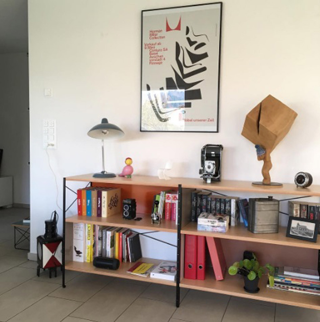 Стеллаж Eames Storage Unit Shelf от дизайнеров Charles & Ray Eames производится с 1949 г. В послевоенные годы дизайнеры выступили с идеей "оторвать" стеллаж от стены и установить его в центре комнаты в роли зонирующей пространство перегородки. Это было инновационным решением для тех лет. Каркас из гальванизированного металла с шероховатой поверхностью, боковины и задние панели лакированы яркими цветами.