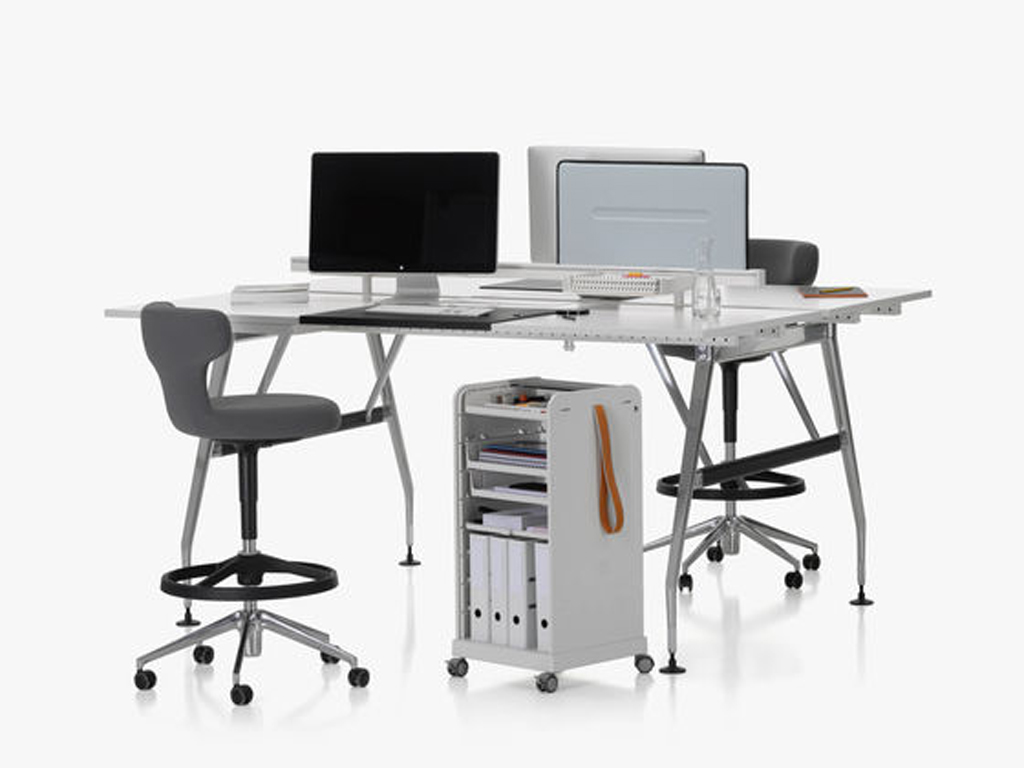 Тумба Follow Me 2 от дизайнера Antonio Citterio производится с 2013 г. Это мобильный инструмент, который может вписаться в любое окружающее пространство и стиль обстановки. Его файлы и ящики могут использоваться как для хранения бумаг и документов, так и для личных вещей. Модель легко передвигается вслед за вами, благодаря удобным роликам и специальной транспортной петле. Наполнение - полки или выдвижные ящики.