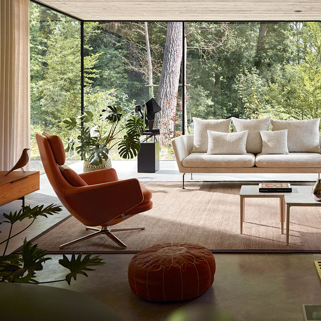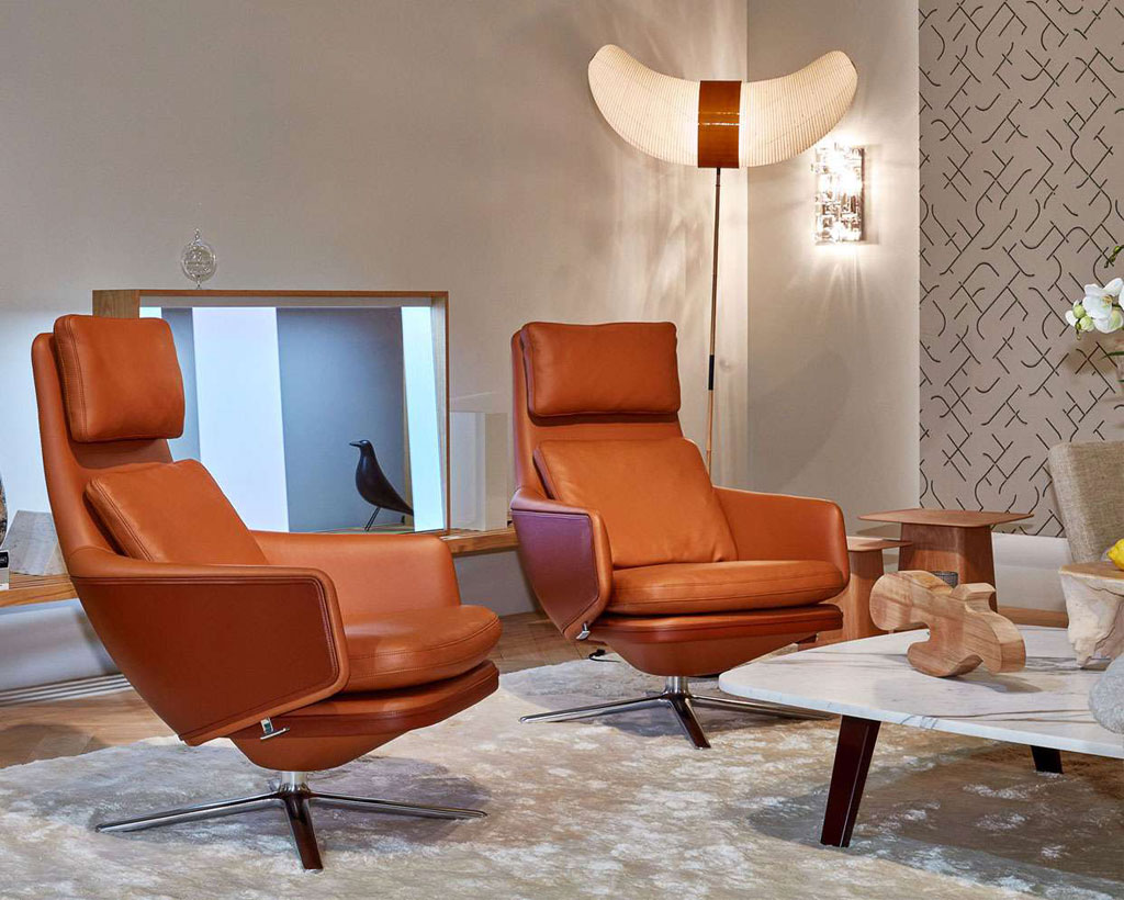 Кресло Grand Relax от дизайнера Antonio Citterio производится с 2019 г. Это роскошное кресло сочетает в себе исключительный комфорт, компактные размеры и классическую сдержанную эстетику. Модель сочетает в себе такие материалы как литой алюминий и высококачественная кожа Премиум. Садясь в кресло, Вы медленно опускаетесь на подушки, в то время как скрытый встроенный механизм поглощает вес и перемещает кресло в наклонное положение. Сиденье и спинка движутся независимо друг от друга. С помощью ручки управления можно регулировать сопротивление механизма, а спинка может быть заблокирована под любым углом. Основание вращается на 360 градусов. Для заказа доступны кресло с пуфом как в комплекте, так и по отдельности. C 2021 г. также доступны варианты в тканевой обивке нескольких категорий.