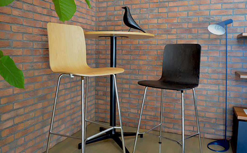 Коллекция стульев HAL Ply от дизайнера Jasper Morrison производится с 2012 г. Она была задумана, как коллекция универсальных стульев, отвечающая различным потребностям. Дизайн стульев впечатляет простотой изогнутых линий, одновременно с этим обещая высокую степень комфорта. В зависимости от эстетических запросов и предполагаемых целей использования, сидения могут комбинироваться с разными основами. Стул HAL Ply Stool - версия с трубчатой стальной основой и сиденьем из дуба. Для заказа доступны 2 высоты стульев Medium и High.