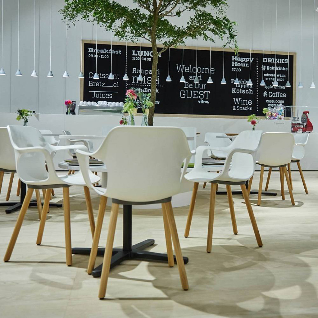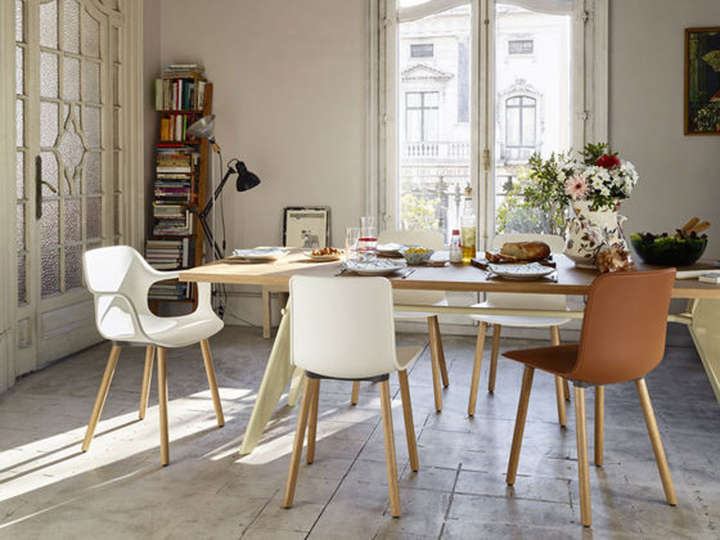 Коллекция стульев HAL от дизайнера Jasper Morrison производится с 2010 г. Она была задумана, как коллекция универсальных стульев, отвечающая различным потребностям. Дизайн стульев впечатляет простотой изогнутых линий, одновременно с этим обещая высокую степень комфорта. В зависимости от эстетических запросов и предполагаемых целей использования, сидения могут комбинироваться с разными основами. Кресло HAL RE Armchair Wood - версия с деревянными ножками, изготовленными из массива дуба, которые придают креслу ощущение домашнего уюта, при этом модель может использоваться не только в помещениях, но и на открытом воздухе.