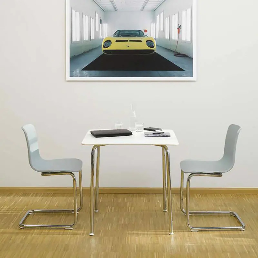 Коллекция стульев HAL от дизайнера Jasper Morrison производится с 2010 г. Она была задумана, как коллекция универсальных стульев, отвечающая различным потребностям. Дизайн стульев впечатляет простотой изогнутых линий, одновременно с этим обещая высокую степень комфорта. В зависимости от эстетических запросов и предполагаемых целей использования, сидения могут комбинироваться с разными основами. Стул HAL RE Cantilever - версия с трубчатой стальной основой и сиденьем из полипропилена, позволяющая добиться еще более высокого комфорта при сидении. Также доступна версия с мягкой сидушкой. Может использоваться как в помещениях, так и на открытом воздухе.