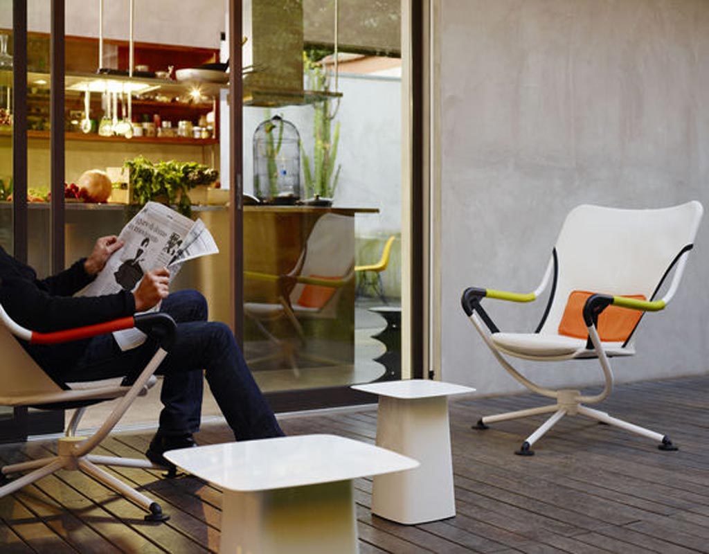Столы Metal Side Table от дизайнеров Ronan & Erwan Bouroullec производятся с 2004 г. Особенностью модели является контраст между тонкой столешницей и тумбообразной опорой с фетровыми наконечниками, это позволяет использовать их для различных целей. Выполнены из листовой стали и окрашены высокоглянцевым лаком. Для заказа доступны 3 размера столов: 315х315хН380, 400x400xH445, 700x315xH355 мм.