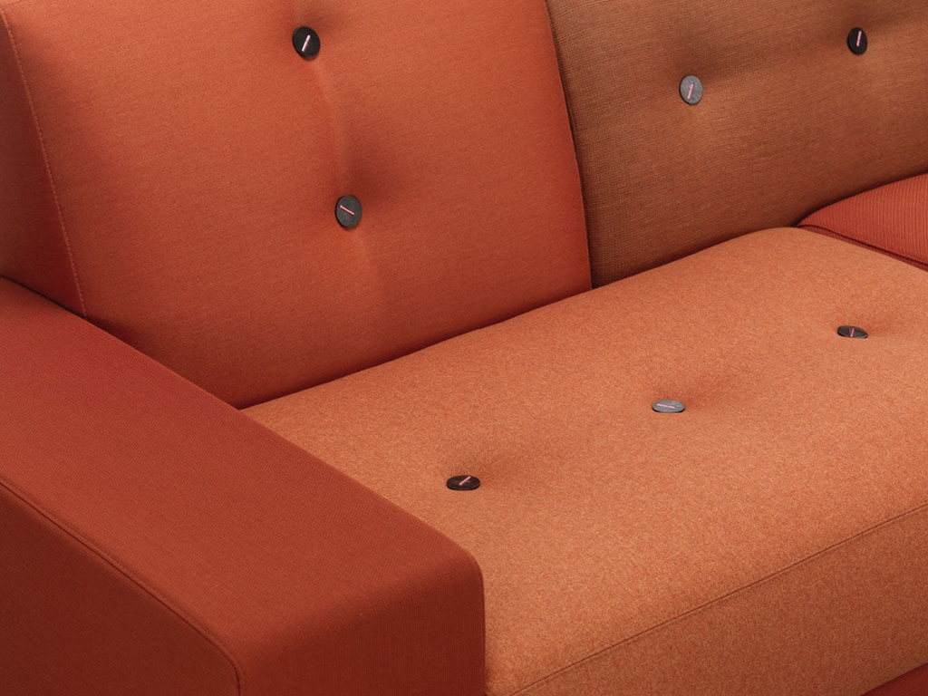 Версия дивана Polder Compact из серии Polder Sofa, от дизайнера Hella Jongerius, производится с 2015 г. В Голландии "Polder" означает осушенные участки земли, частично занятые под посадки и вспаханные. С высоты птичьего полета они напоминают одеяло, сшитое из множества лоскутов. Текстильные подушки различных оттенков, из которых состоит диван Polder Sofa, похожи на разноцветные лоскутные поля - отсюда его название. Каждая деталь Polder Compact проработана с максимальной тщательностью и представляет собой сочетание объемов простых геометрических форм, расшитых, словно вытащенными из бабушкиного сундука, пуговицами разных оттенков и материалов, таких как рог, бамбук и перламутр. Для заказа доступны варианты в четырех цветовых оттенках.
