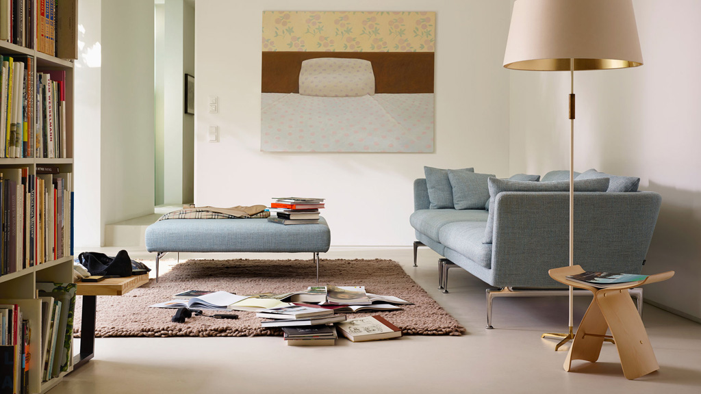 Диван Suita Sofa от дизайнера Antonio Citterio был впервые представлен в 2010 г. на мебельной выставке в Милане. Диван получил свое название в честь альпийской области Швейцарии, граничащей с Италией. Suita Sofa - это часть целого модельного ряда мебели, который может комбинироваться в различных вариантах. Suita Sofa была задумана как классический диван, отдельные части которого могут использоваться по разному, а компактный и сдержанный дизайн позволяет легко вписаться в любое окружающее пространство. Каркас из стальных трубок, ножки из литого полированного алюминия, наполнитель - пенополиуретан, обивка - ткань или кожа различных категорий. Дополнительно можно приобрести декоративные подушки, украшенные мотивами, распространенными в швейцарском катоне Граубюнден, сделанные из тканей дизайнера Alexander Girard. Для заказа доступны различные размеры и комбинации.